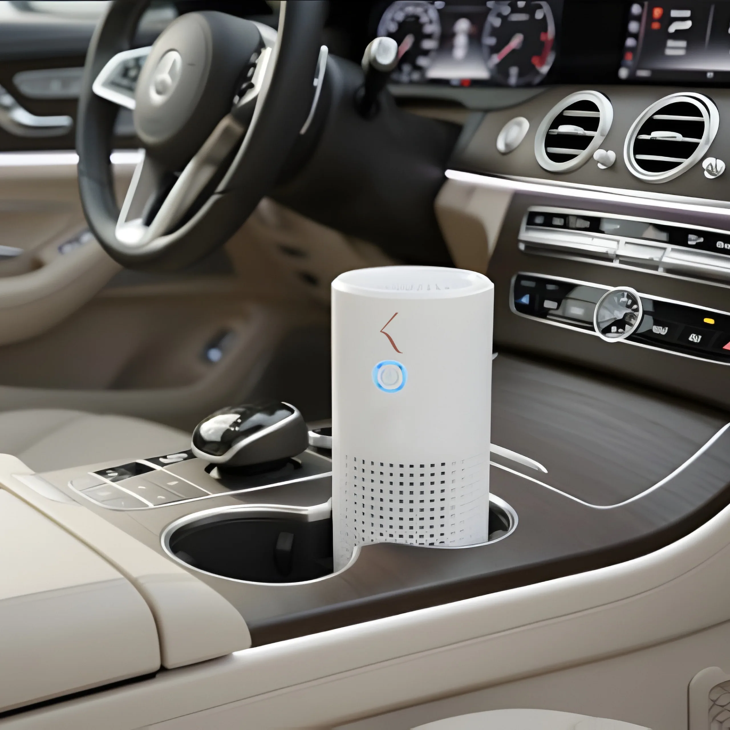 With a compact 68mm diameter, it fits seamlessly into any car’s cup holder, making it your ideal on-the-go purifier.