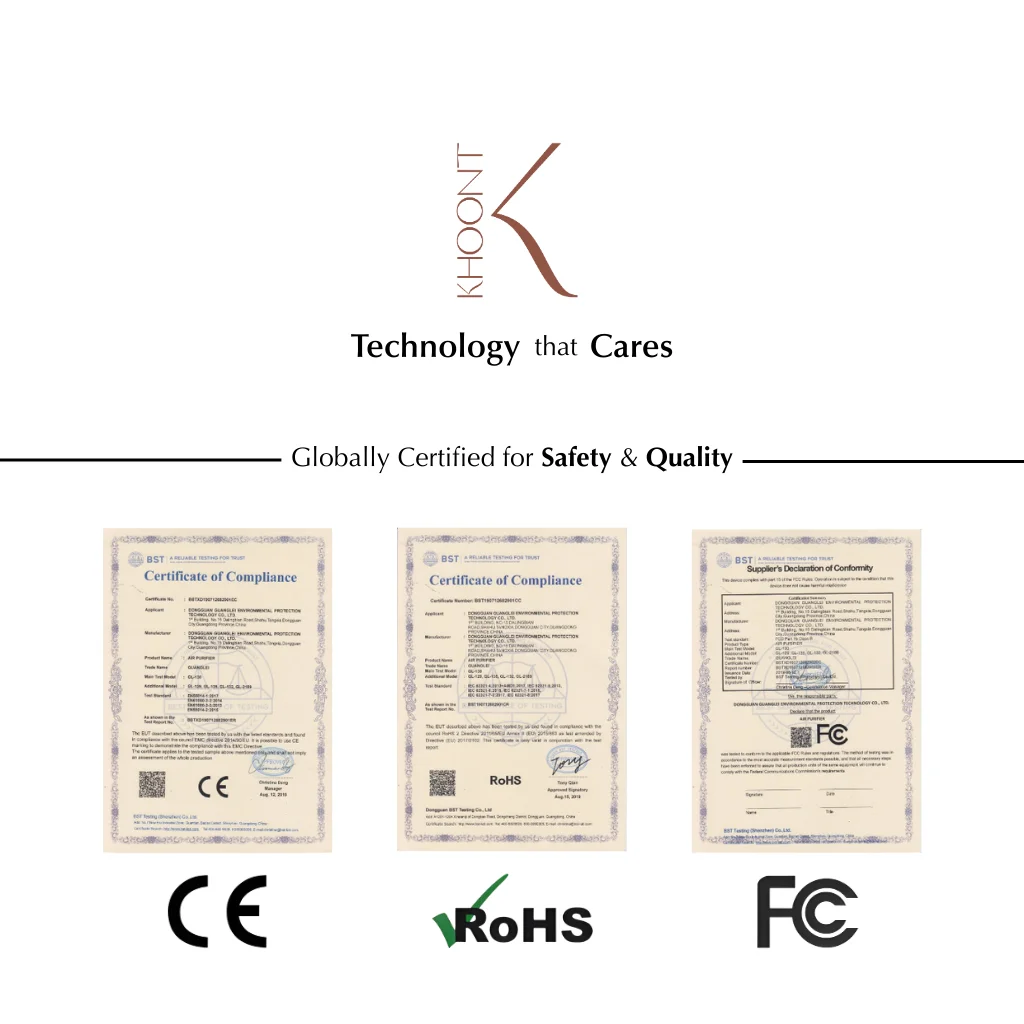 Experience clean, fresh air wherever life takes you. The KHOONT Portable Air Purifier is engineered for modern living — compact, powerful, and effortlessly elegant.
